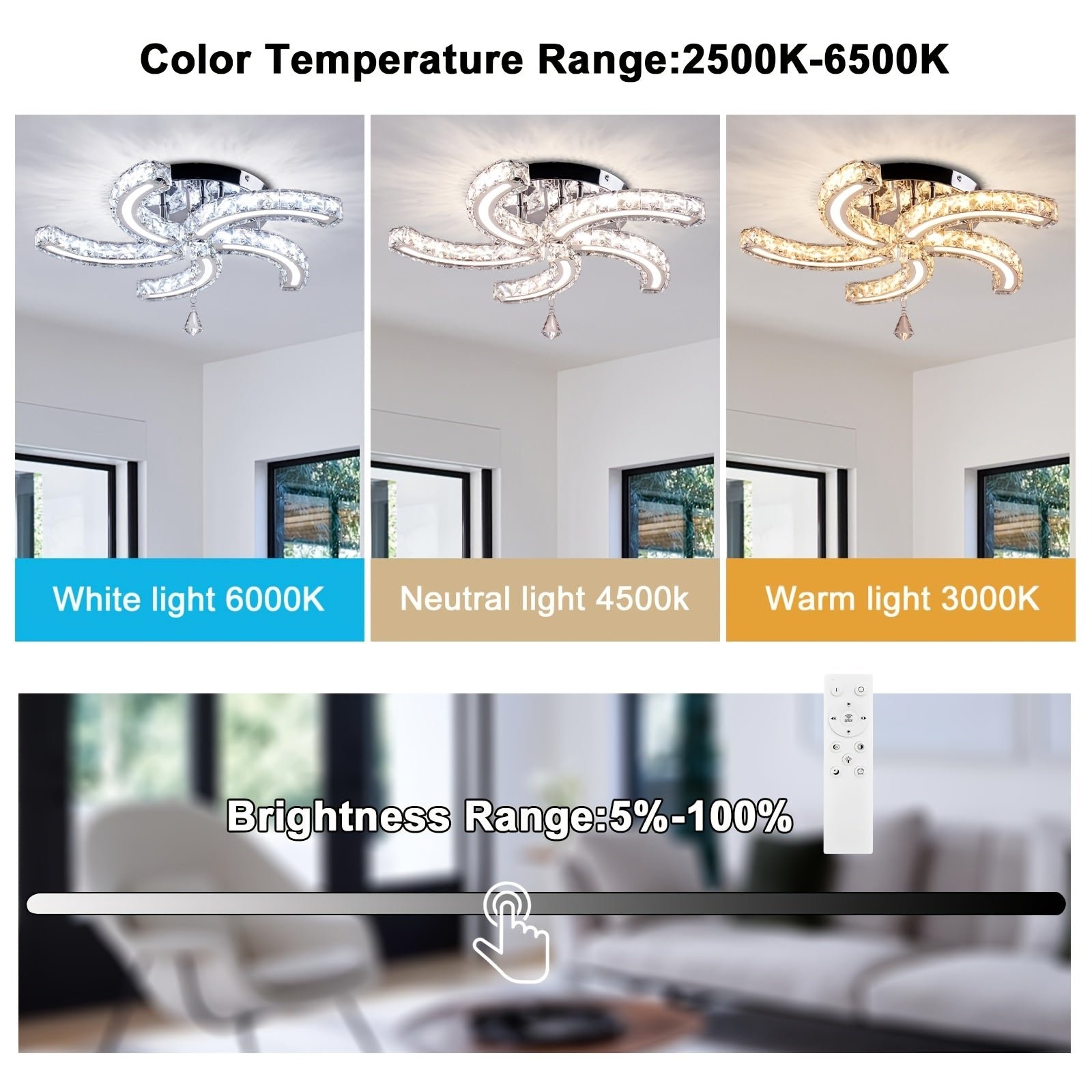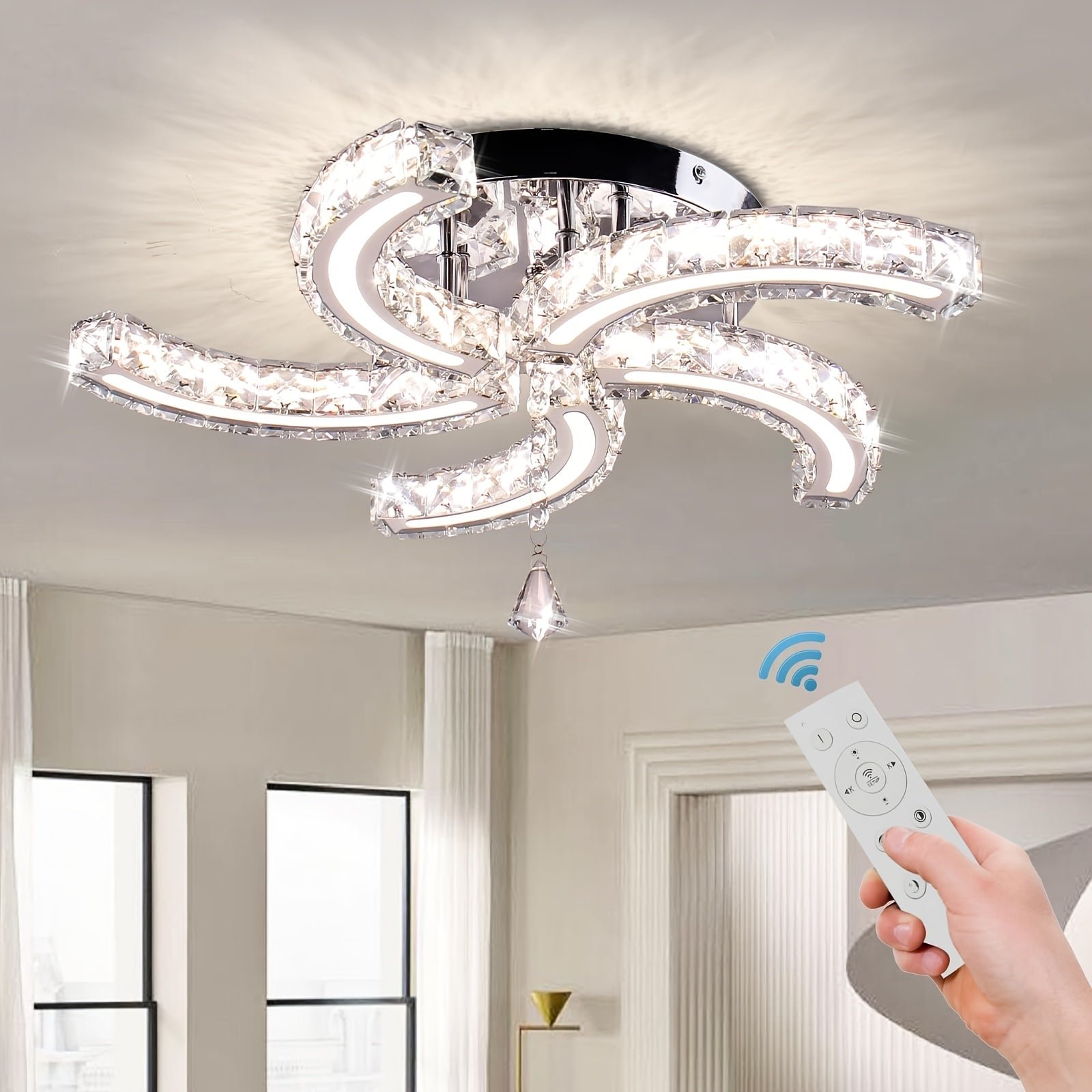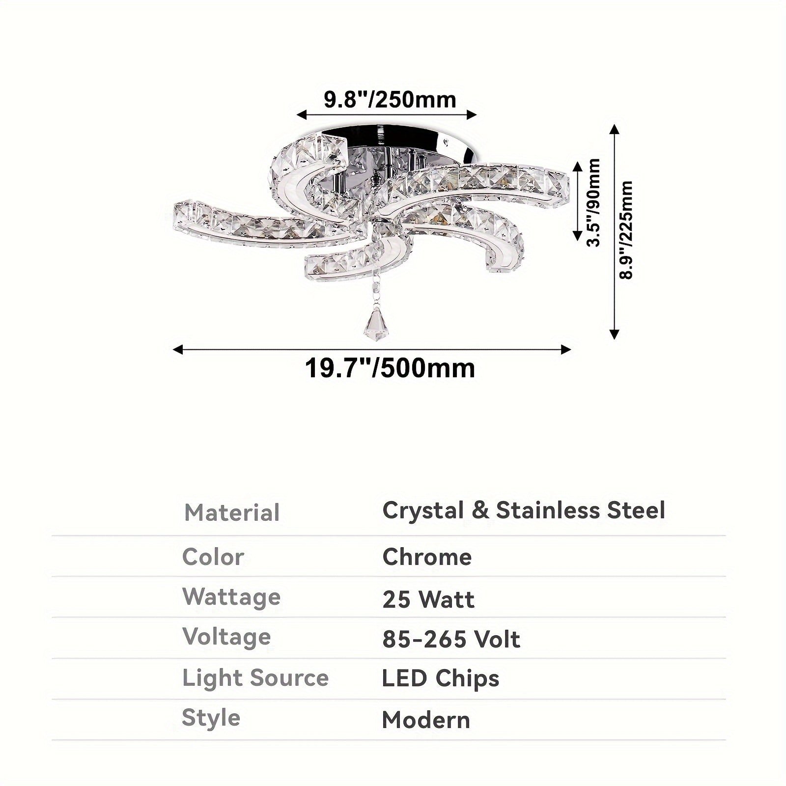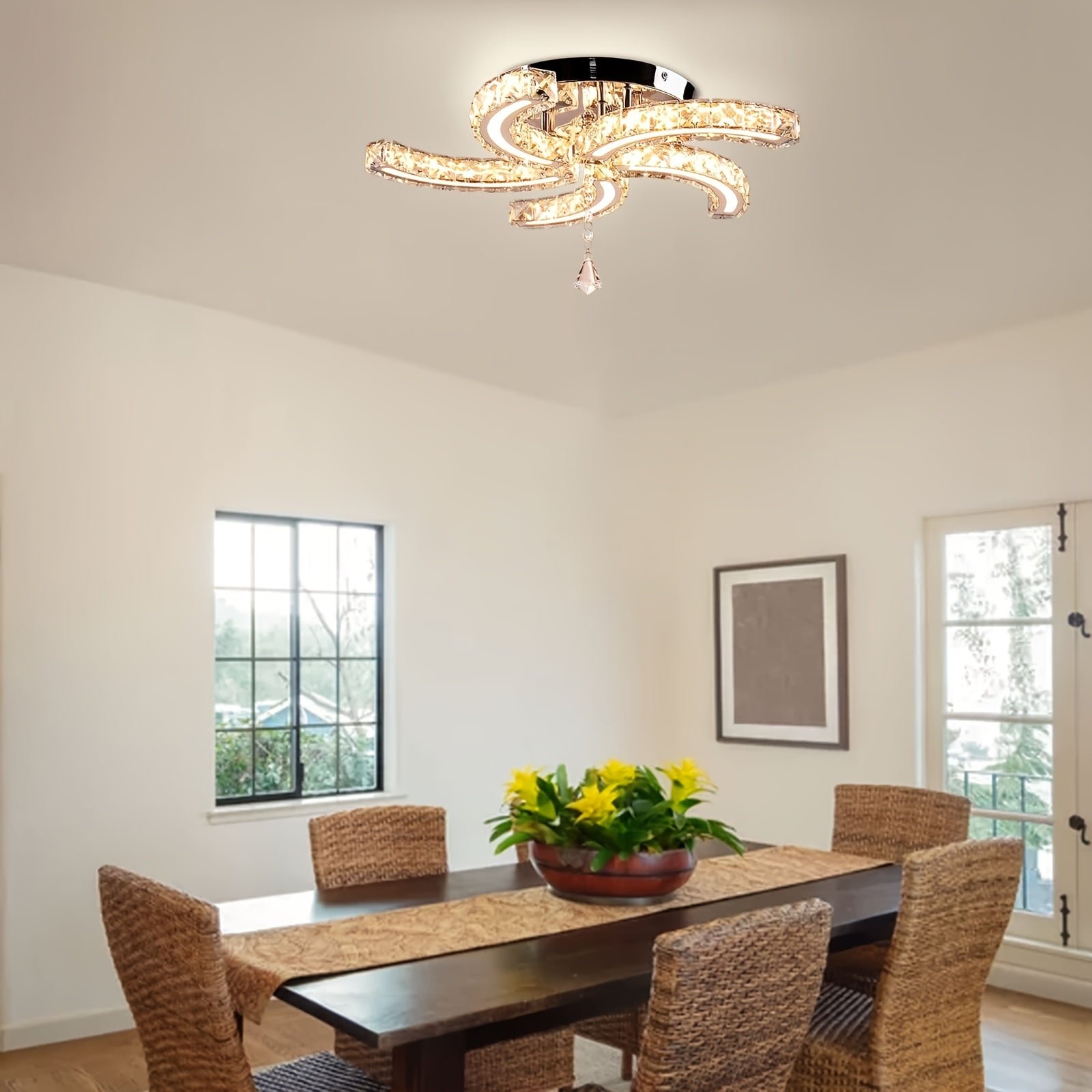 Add timeless elegance and brilliance to your home with this Semi Flush ceiling crystal light fixtures. Designed with five gracefully curved crystal arms and a polished chrome finish, this fixture combines contemporary design with luxurious detailing. The crystal embellishments sparkle beautifully under the integrated LED light, creating a dazzling effect that enhances any dining room, bedroom, kitchen, or living space.