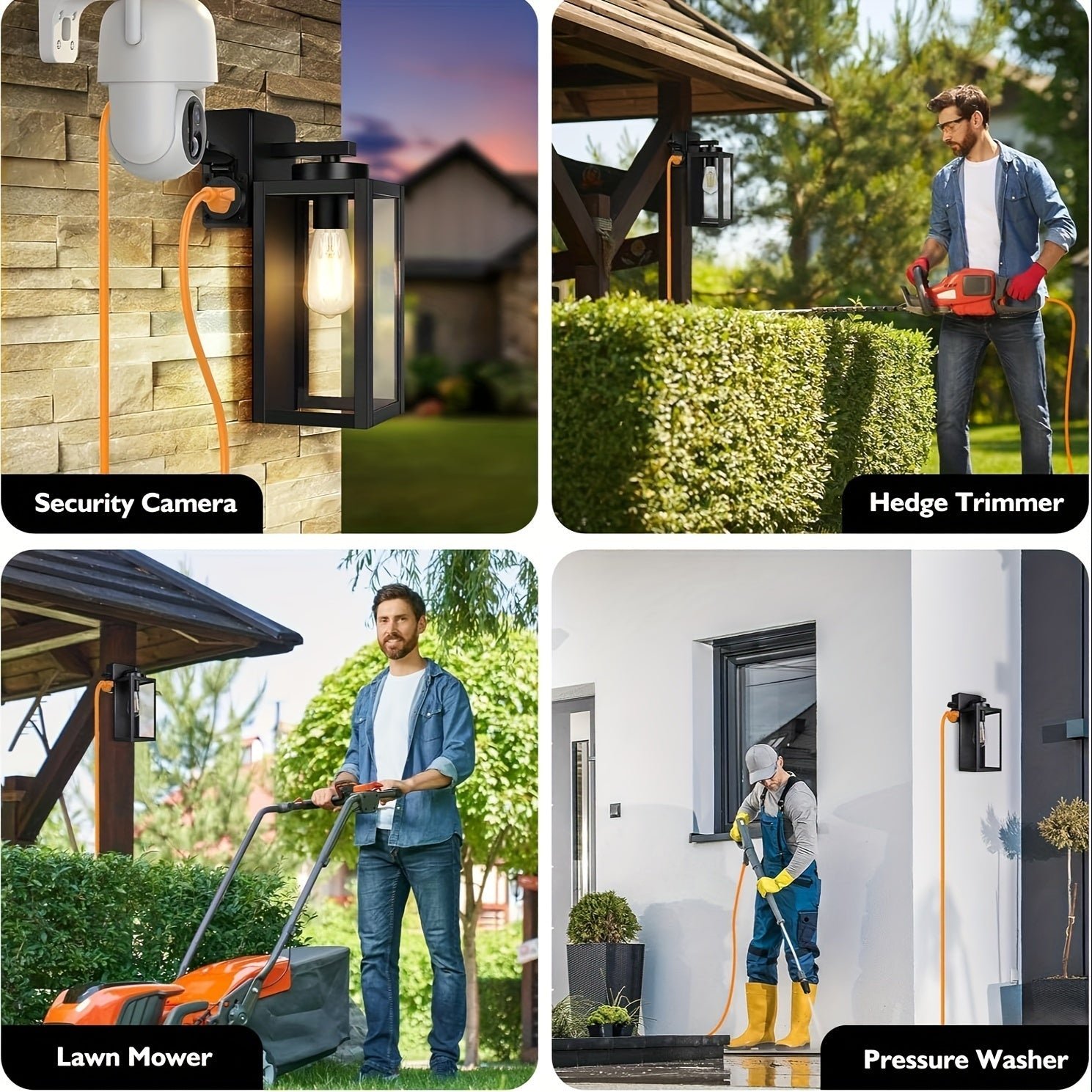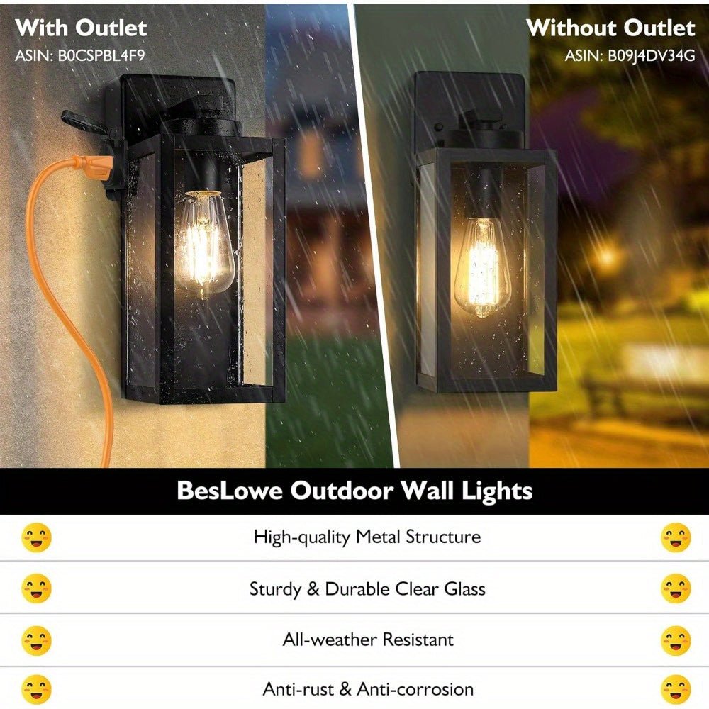 These lights are the perfect addition to your home’s exterior, combining modern style with practical functionality. Each light features a built-in outdoor power outlet, making it easy to plug in holiday decorations, lawn tools, or other outdoor devices without extra extension cords. Designed with a durable metal frame and clear glass shade, these fixtures deliver excellent lighting performance while withstanding all weather conditions. Ideal for porches, front doors, garages, patios, and entryways, they not only enhance curb appeal but also provide dependable illumination for security and convenience.